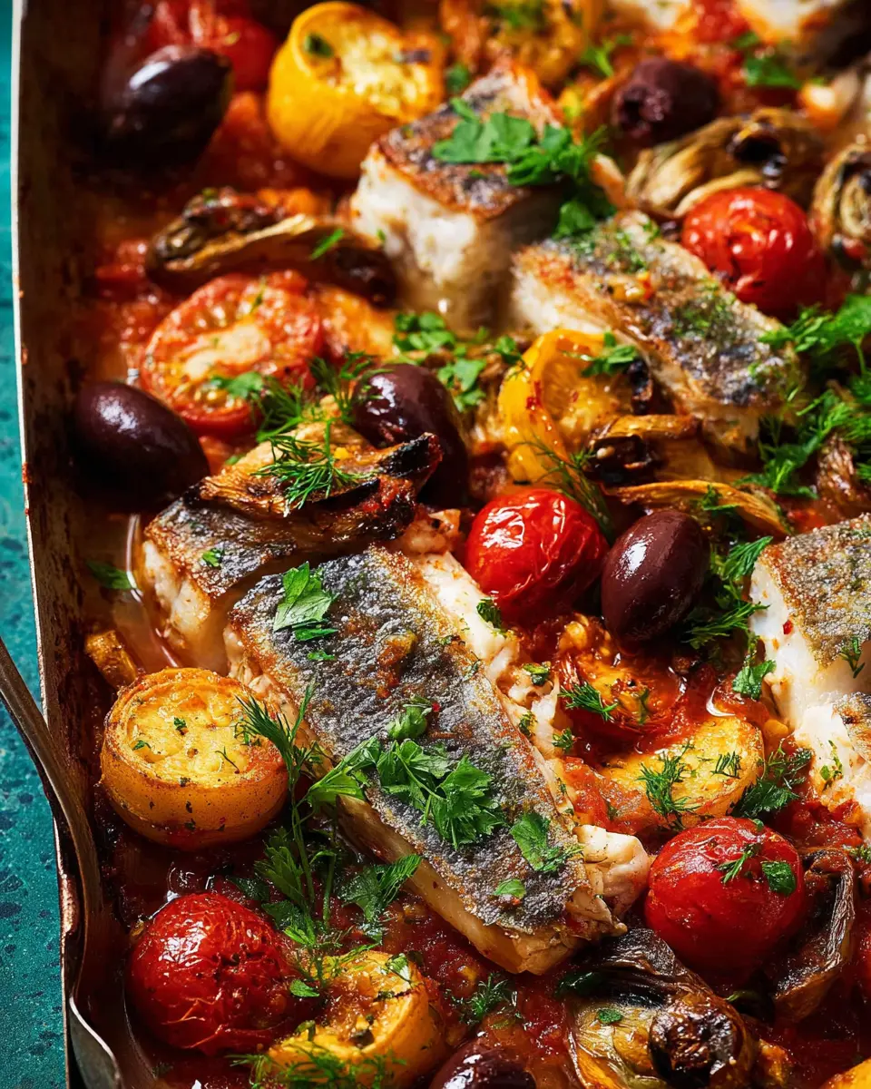 Enjoy your flavorful and hearty Puttanesca fish tray bake!