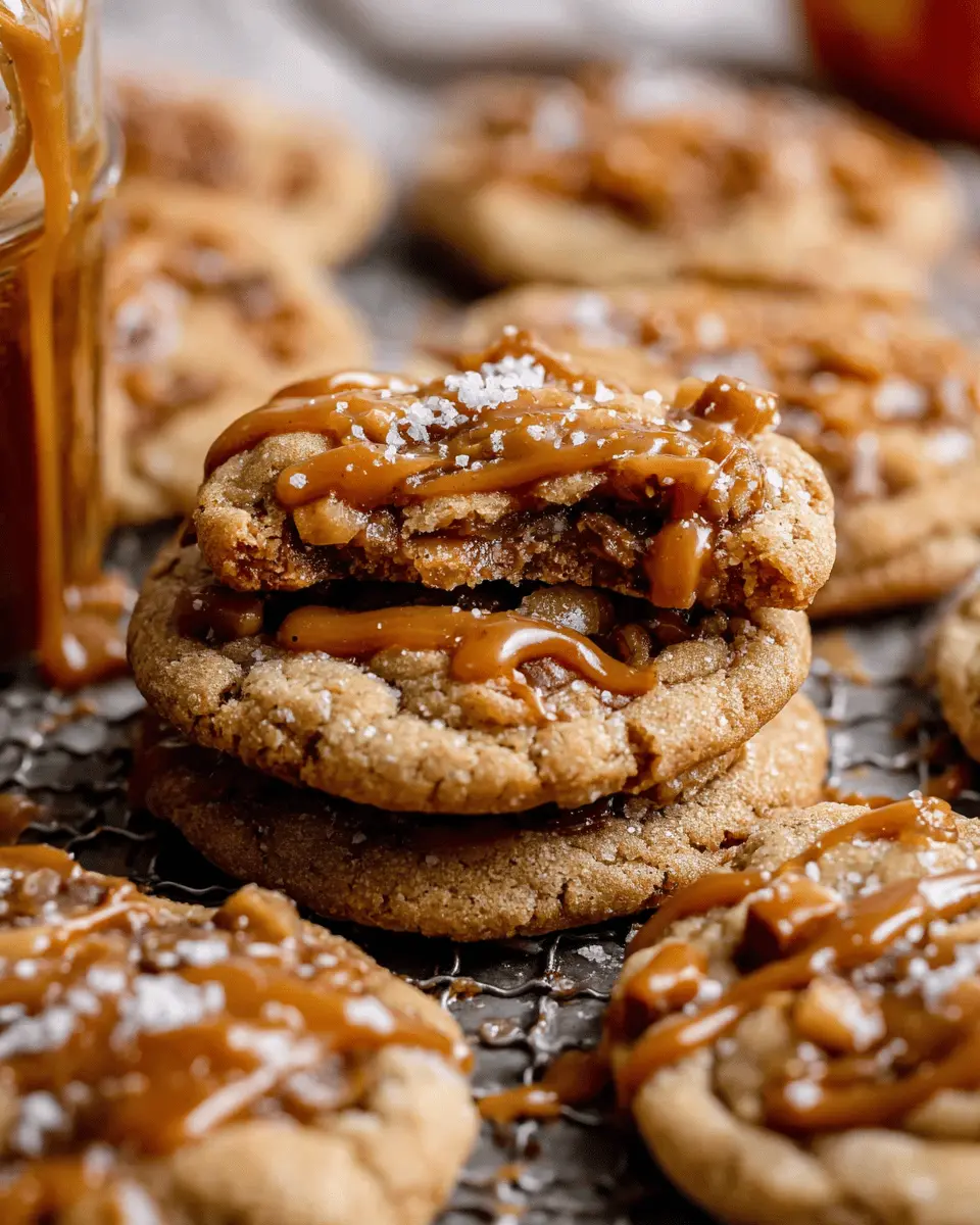 These cookies are not just a treat; they can steal the show at gatherings! Present your salted caramel apple pie cookies on a rustic wooden platter or tiered cake stand to enhance their homemade charm. Consider adding a drizzle of extra salted caramel on top for a stunning visual touch. For a fun twist, serve them with small cups of whipped cream for dipping or pair them with cheese—think sharp cheddar or creamy Brie. This combination balances sweetness and adds a savory note to the treat, making your dessert table unforgettable!