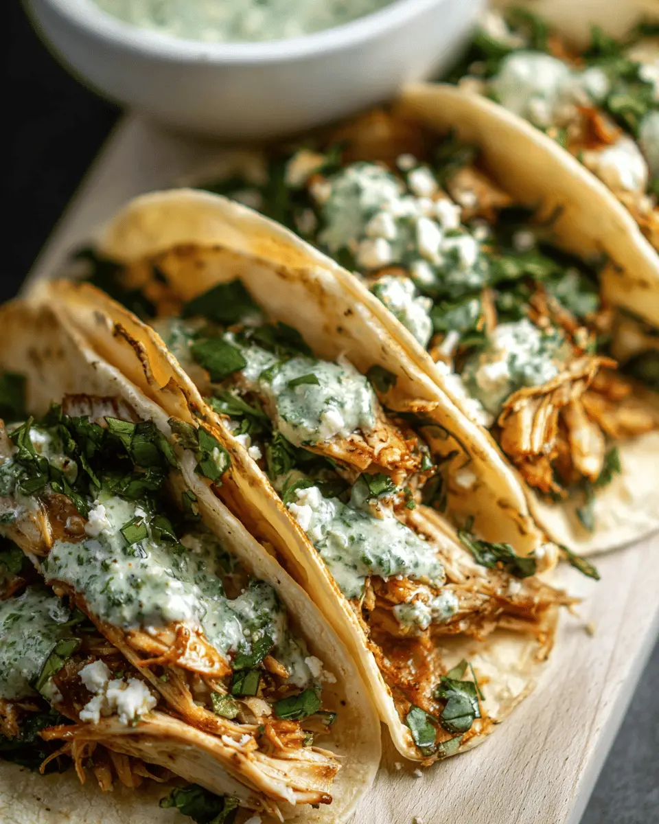 Shredded Chicken Tacos with Creamy Chimichurri Sauce