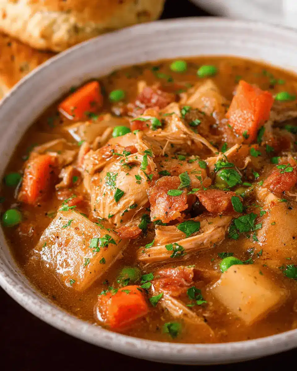 To elevate your slow cooker chicken stew, consider serving it alongside a creamy garlic mashed potato or a fresh garden salad drizzled with vinaigrette. Additionally, a warm crusty bread—think sourdough or whole grain—is perfect for dipping and soaking up that rich broth. Toppings like freshly chopped parsley or a sprinkle of grated Parmesan can enhance the flavors beautifully.