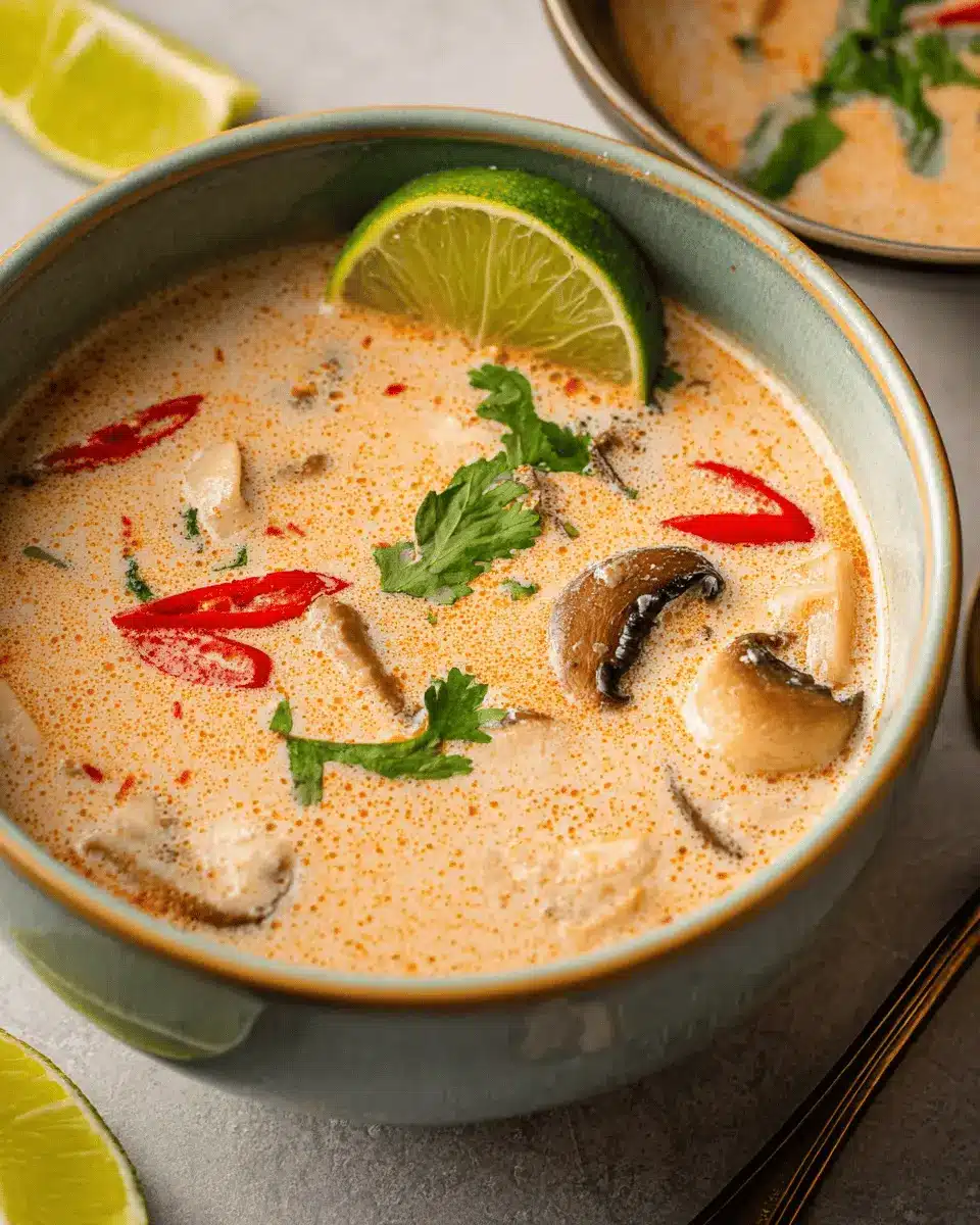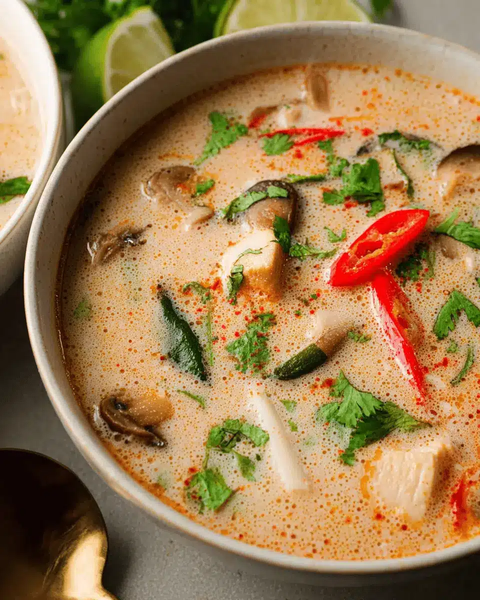 A well-presented bowl of slow cooker tom kha soup is almost as delightful as its taste! Use vibrant bowls, and garnish with a generous handful of thinly sliced green onions and fresh cilantro for that pop of color. A squeeze of fresh lime right before serving not only enhances the flavor but also adds a lovely zest. Lastly, consider drizzling a bit of coconut cream on top for a luscious finish that makes this dish truly Instagram-worthy!