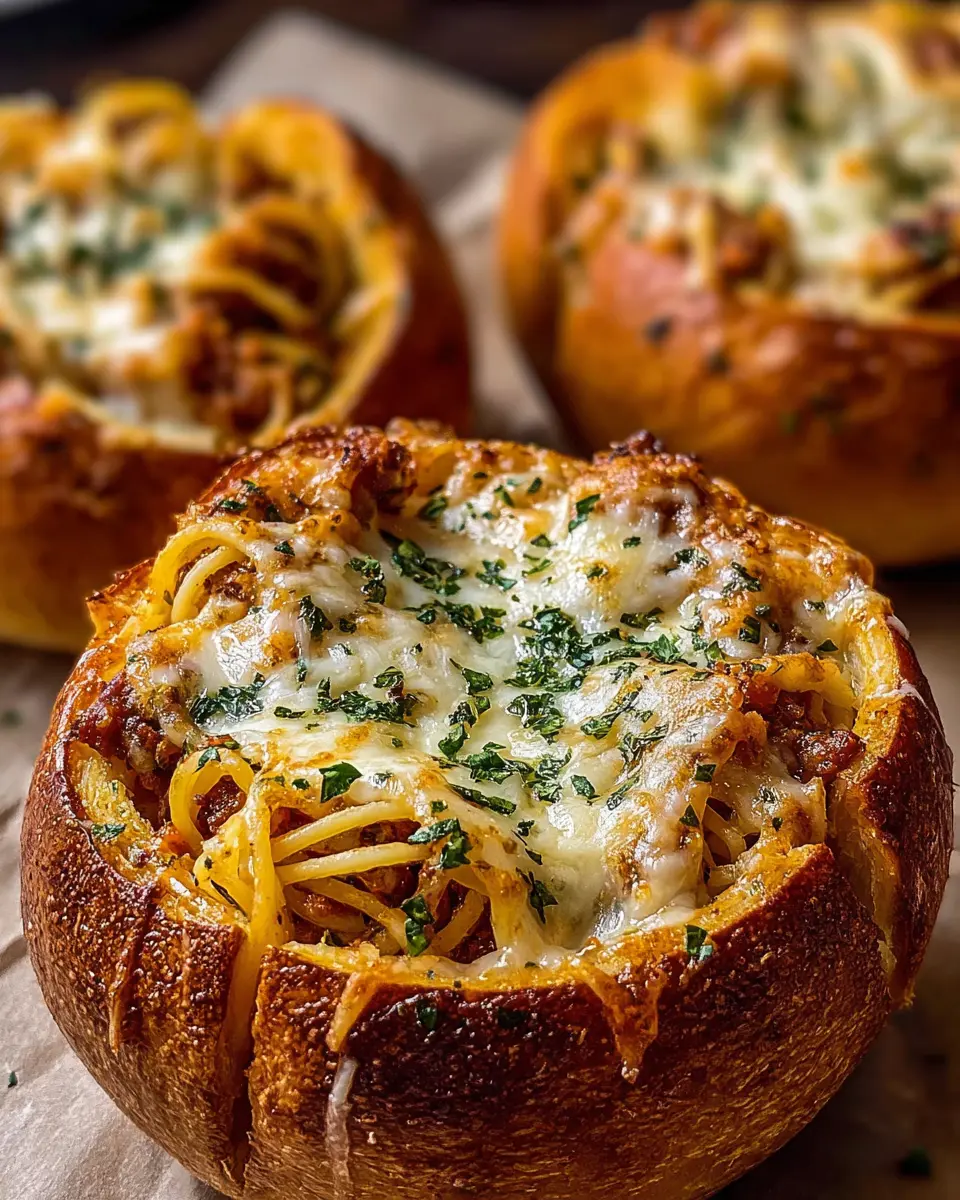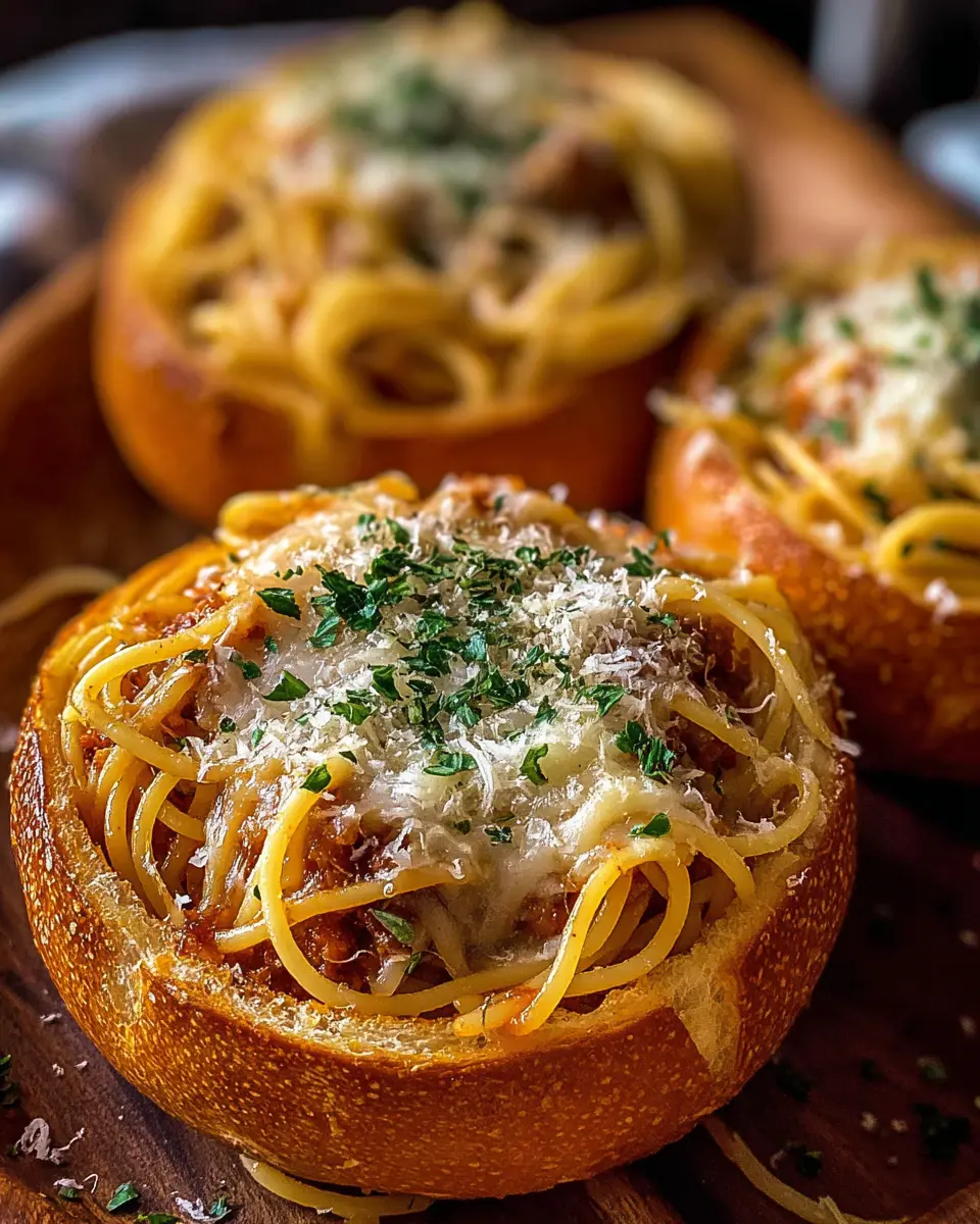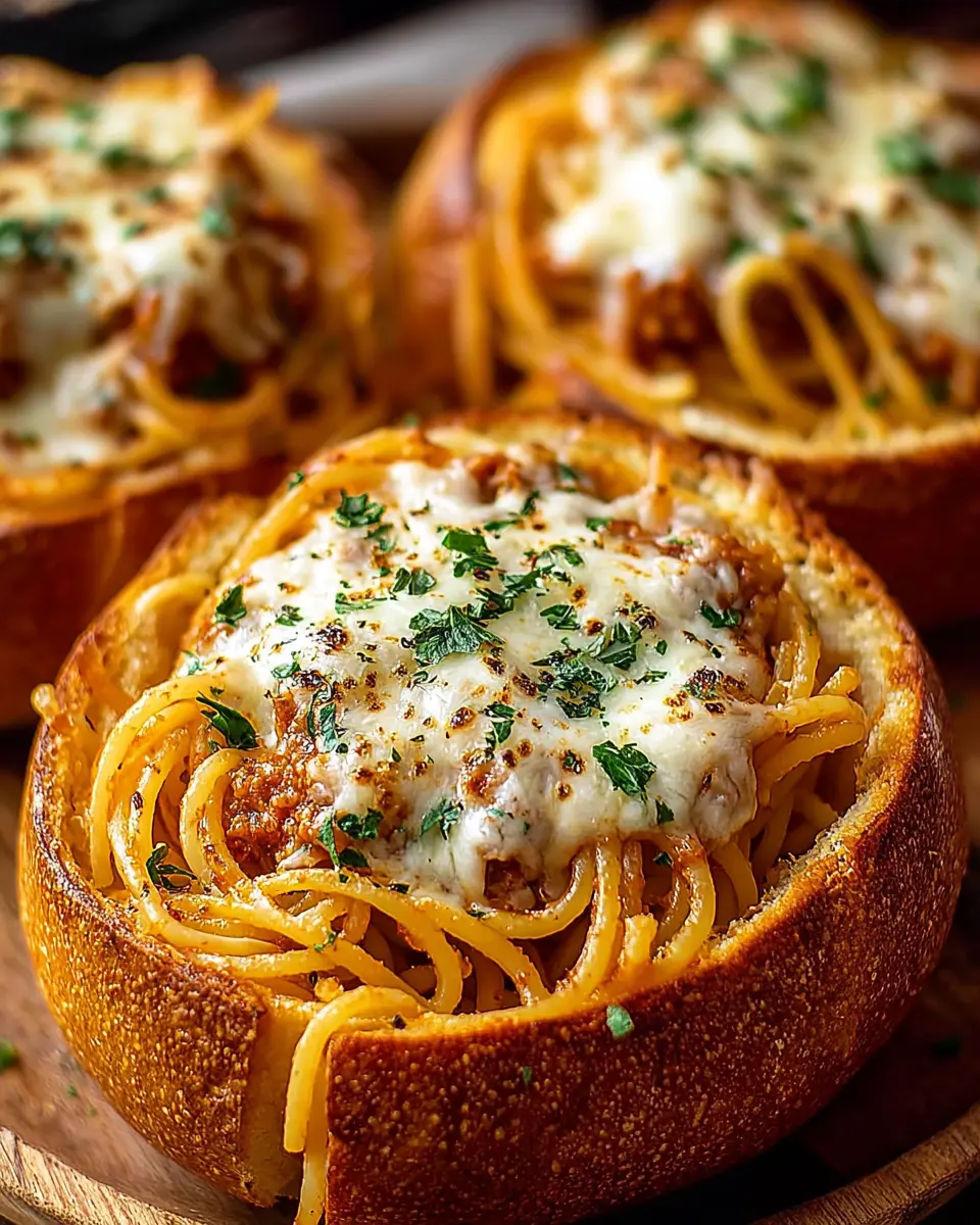 Spaghetti Garlic Bread Bowls
