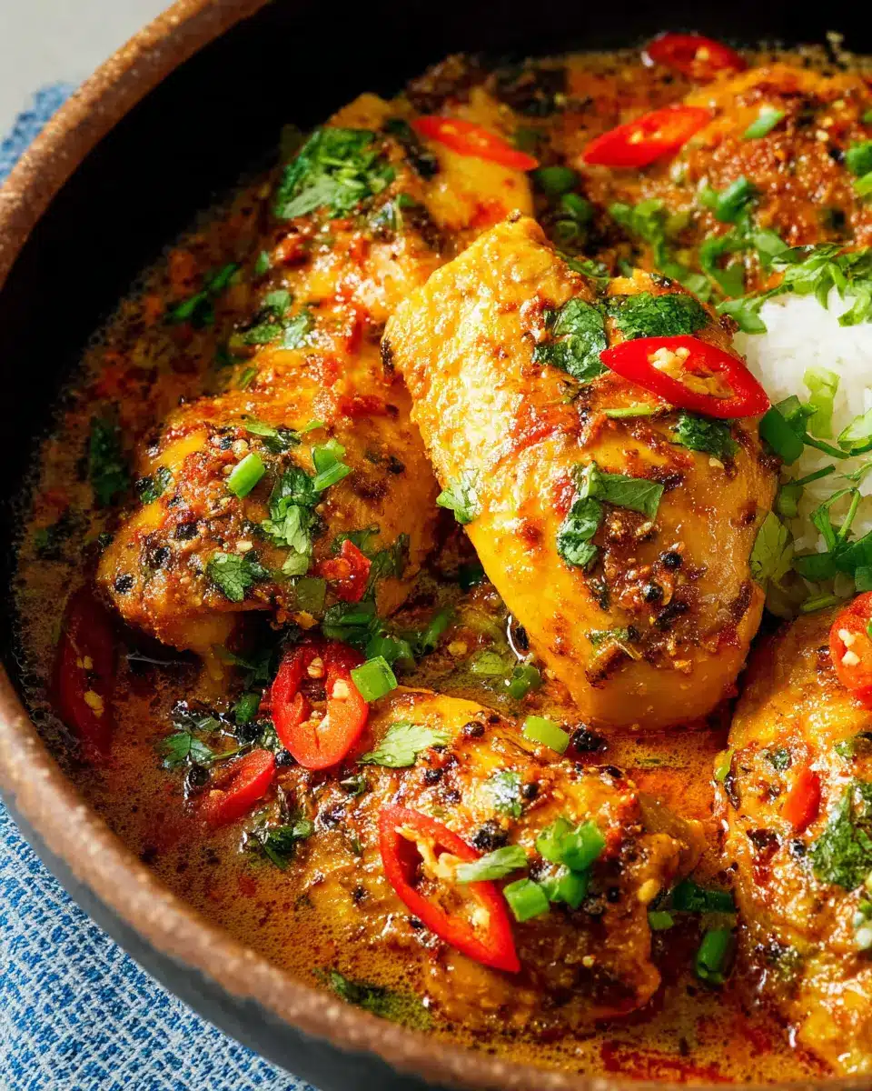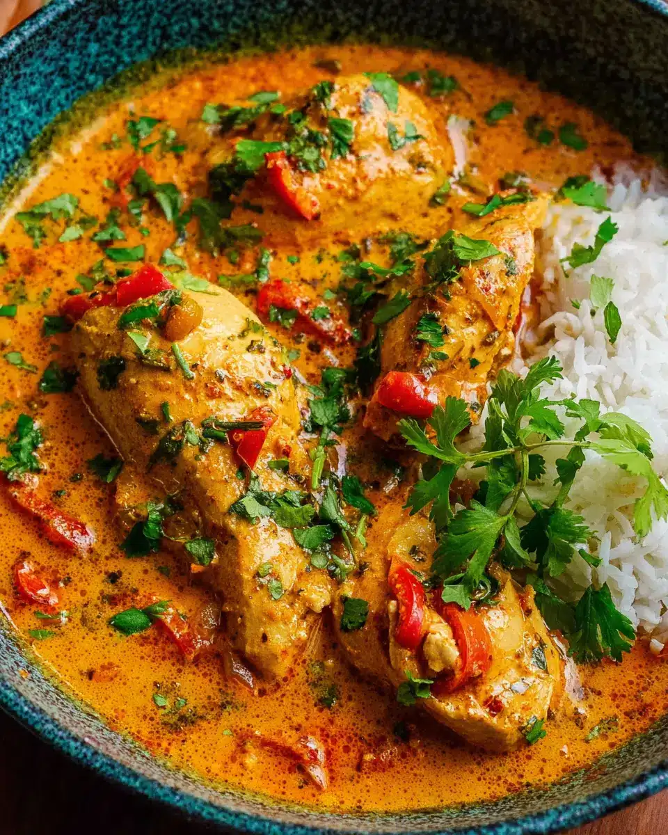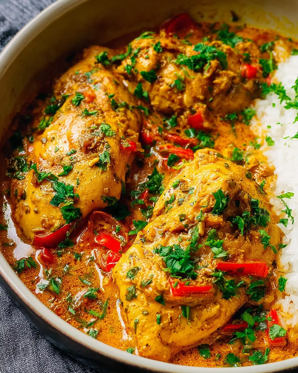 - Serve the chicken in a large, shallow bowl topped with the luscious coconut sauce, garnished with fresh parsley or cilantro for a burst of color.