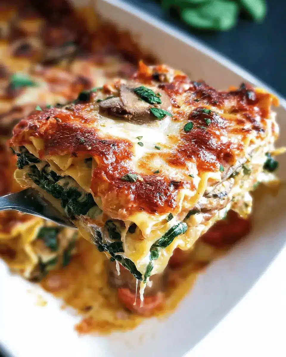 Elevate your spinach mushroom lasagna by mixing in other vegetables! Consider adding roasted zucchini, grilled bell peppers, or even artichoke hearts for a burst of flavor and nutrition. You could also incorporate kale for added texture or thinly sliced eggplant for a hearty twist. Experimenting with seasonal veggies means each lasagna can be a unique and delightful surprise!