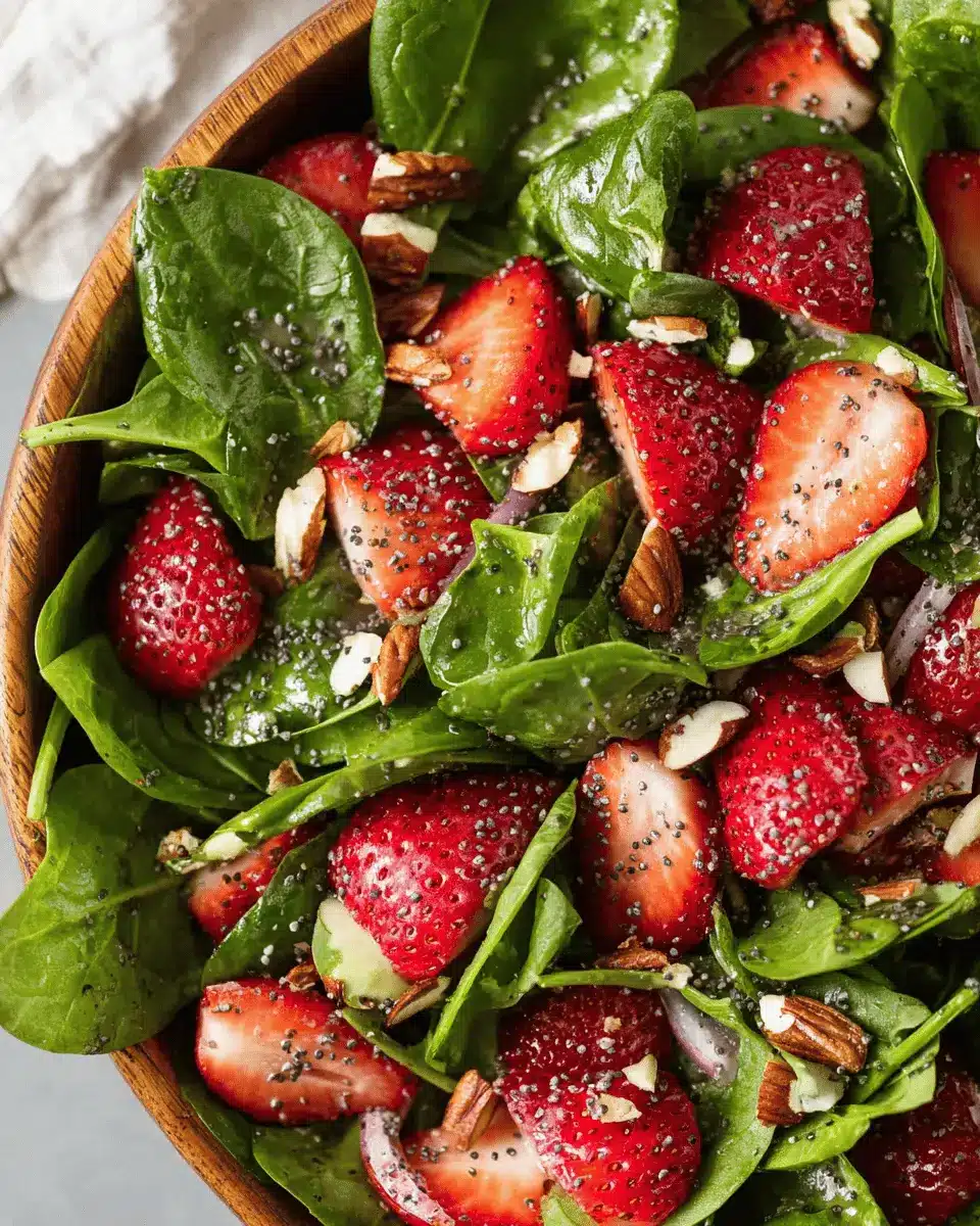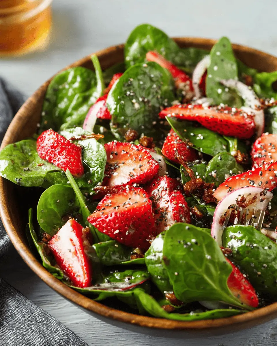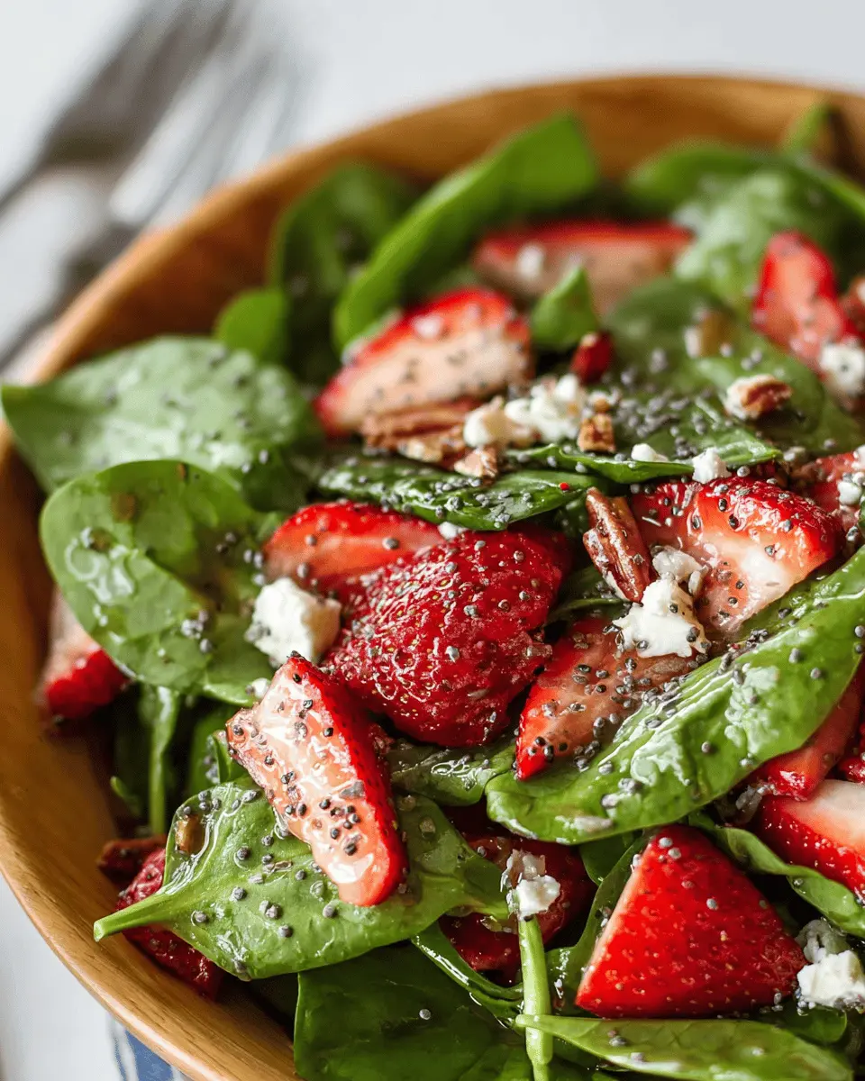This spinach strawberry salad is a perfect blend of flavors and textures, making it an ideal choice for any occasion. With its vibrant colors and delicious balsamic poppy seed dressing, it’s not just a feast for the eyes but also a nutritious option. Enjoy this refreshing salad as a delightful side or a light meal!