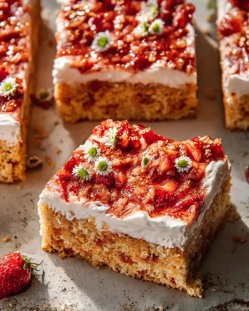 And there you have it! Slice up your mouth-watering strawberry shortcake sheet cake and get ready to enjoy a slice—or two! Perfect for gatherings or just because, this cake is sure to impress. Happy baking!
