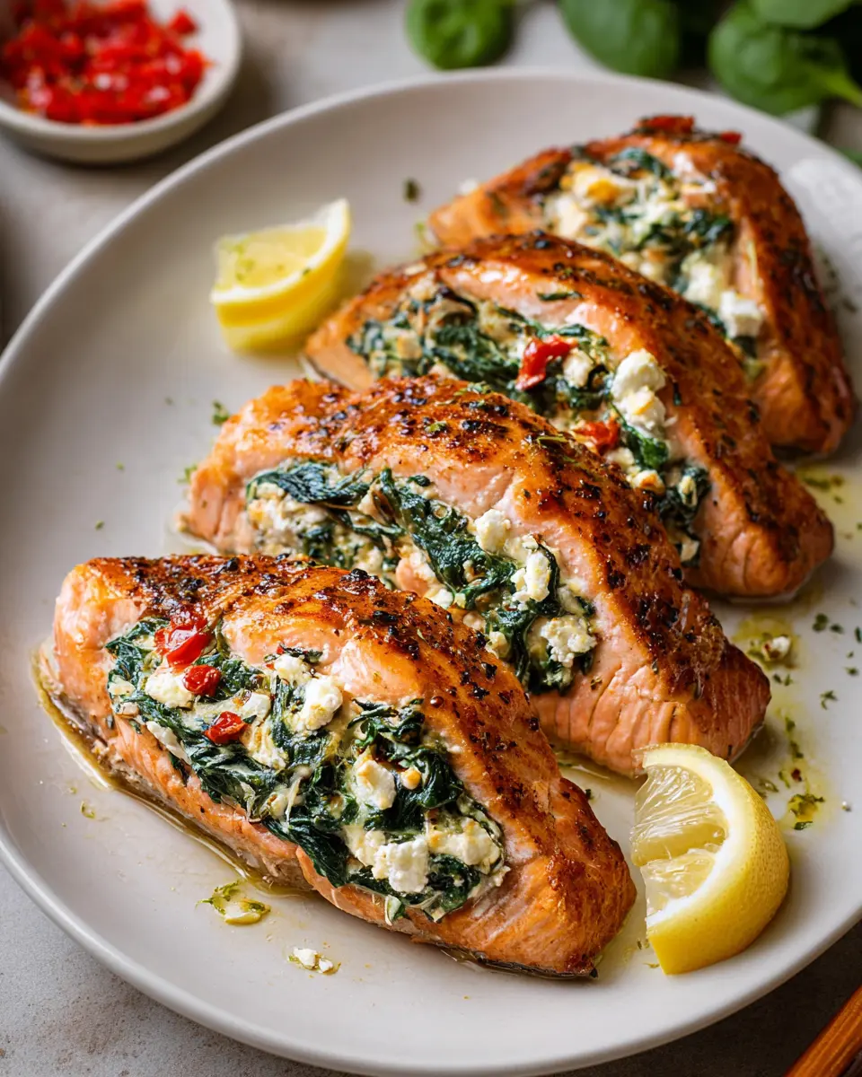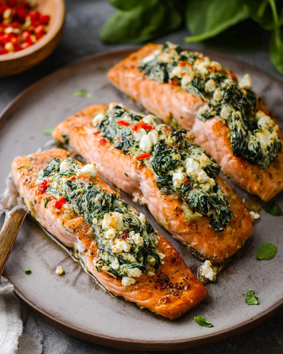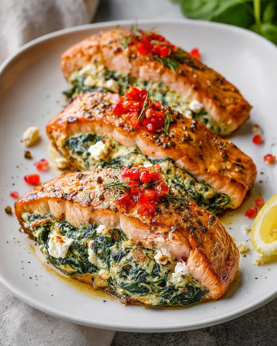 There you have it—a delightful stuffed salmon with spinach ready to impress. Enjoy this delectable dish with a simple side salad or some roasted vegetables for a complete meal!