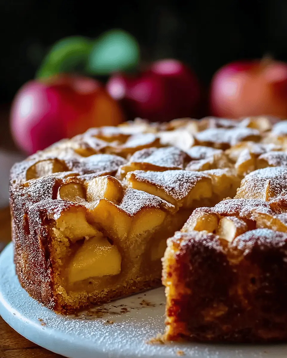 - Bake for 40–45 minutes, or until the cake is golden brown, the apples are tender, and a toothpick inserted into the center comes out clean.