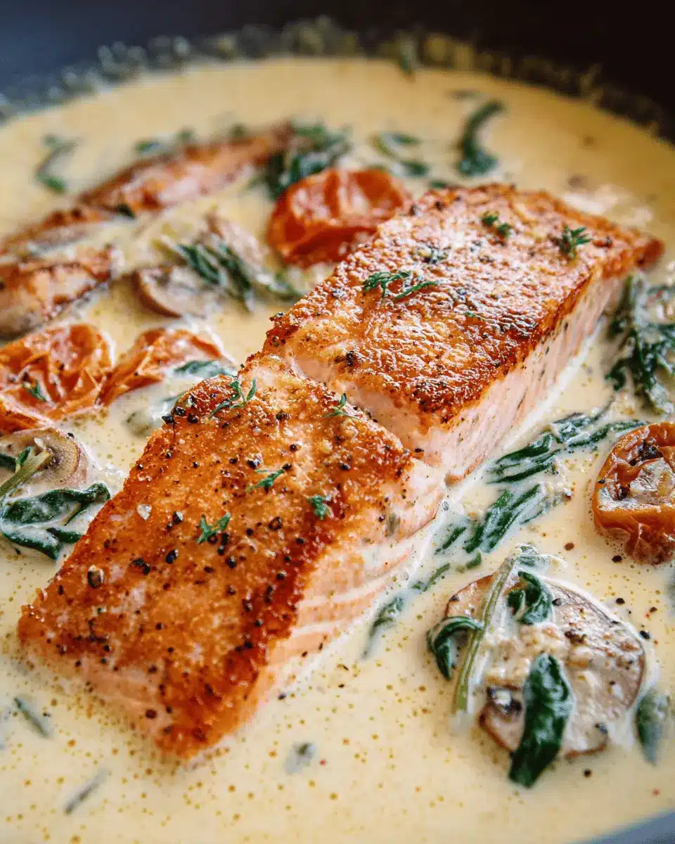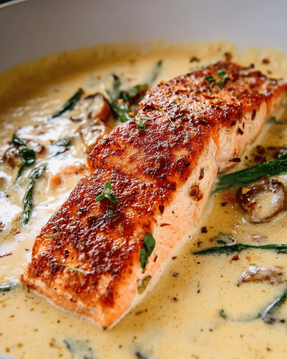 This Tuscan Salmon with Parmesan Cream Sauce is not only a feast for the eyes but also a delightful experience for the palate. Enjoy creating this rich and savory dish that’s sure to impress!