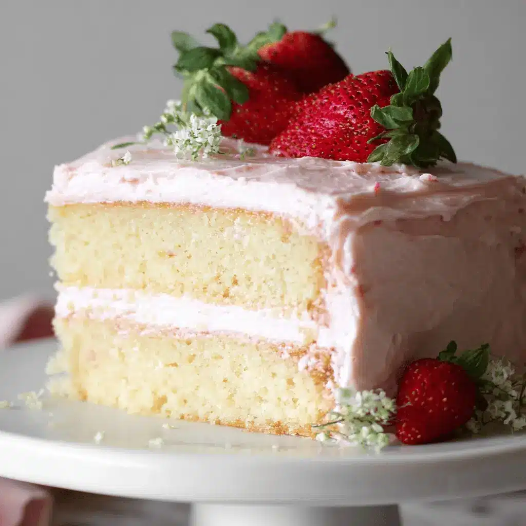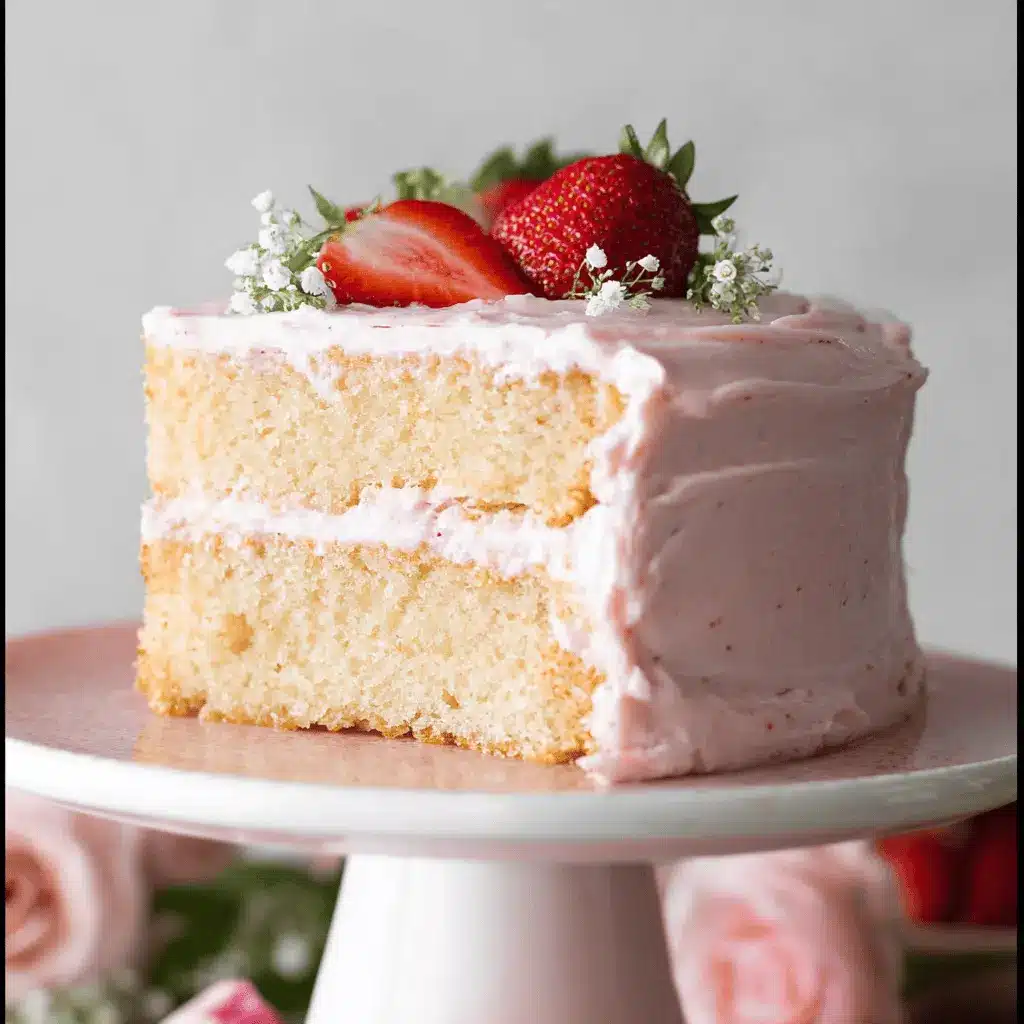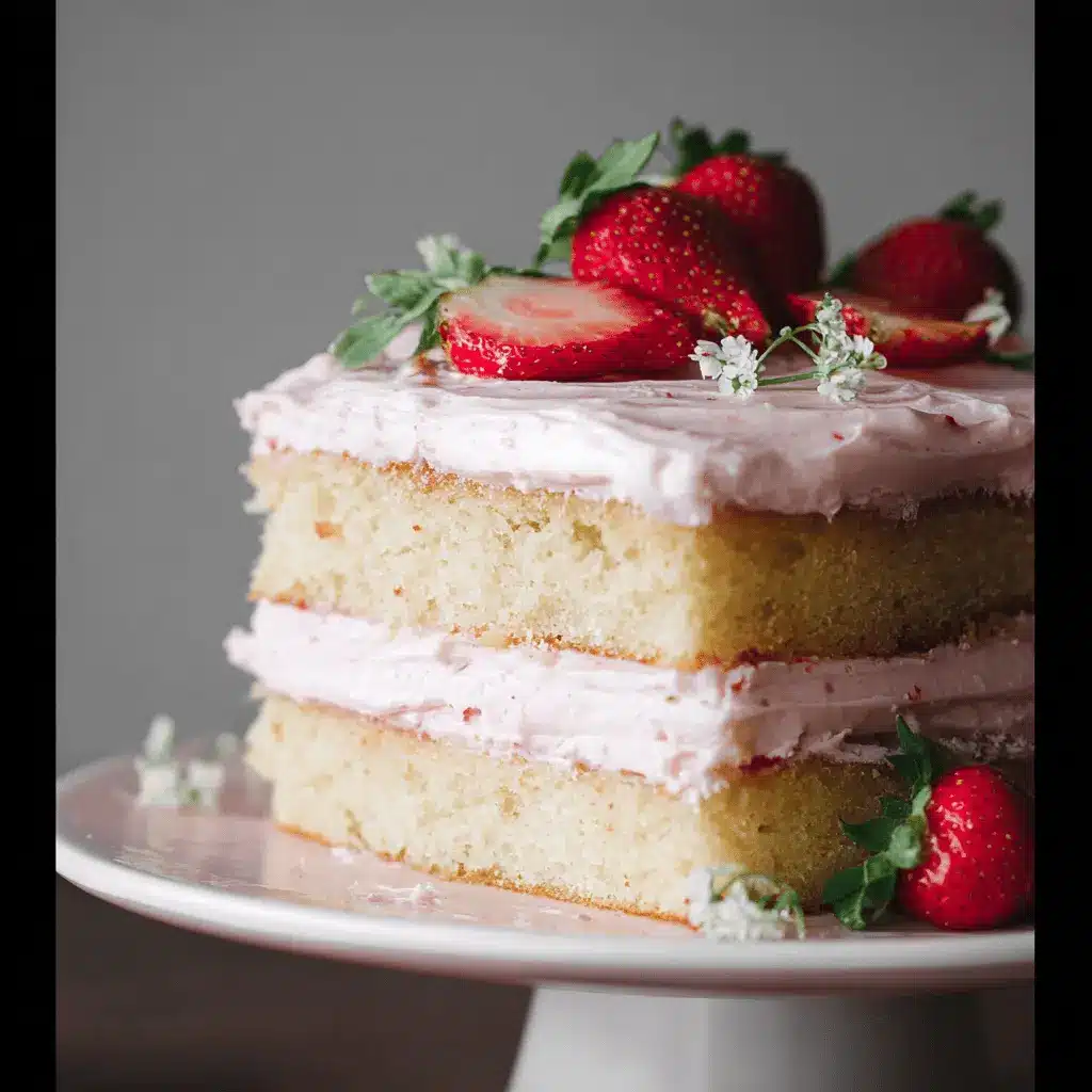 Imagine sinking your fork into three moist layers, each infused with rich vanilla flavor, complemented beautifully by a luscious strawberry cream cheese frosting. The combination of fresh strawberries and creamy frosting creates a delightful contrast, enhancing the cake's flavors while adding a burst of color that's perfect for celebrations.